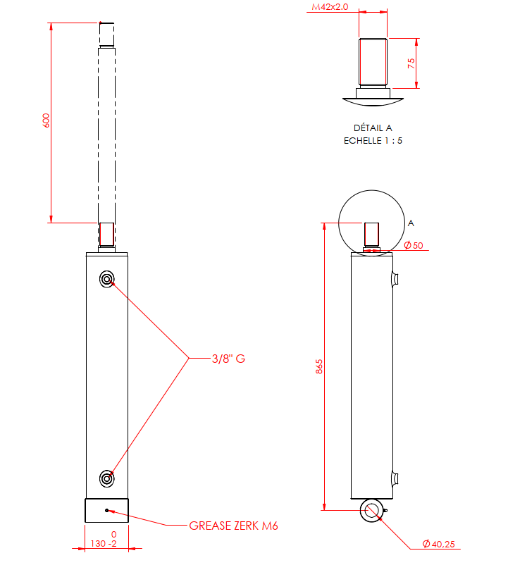 Vérin hydraulique Ø110/Ø50mm course 600mm
