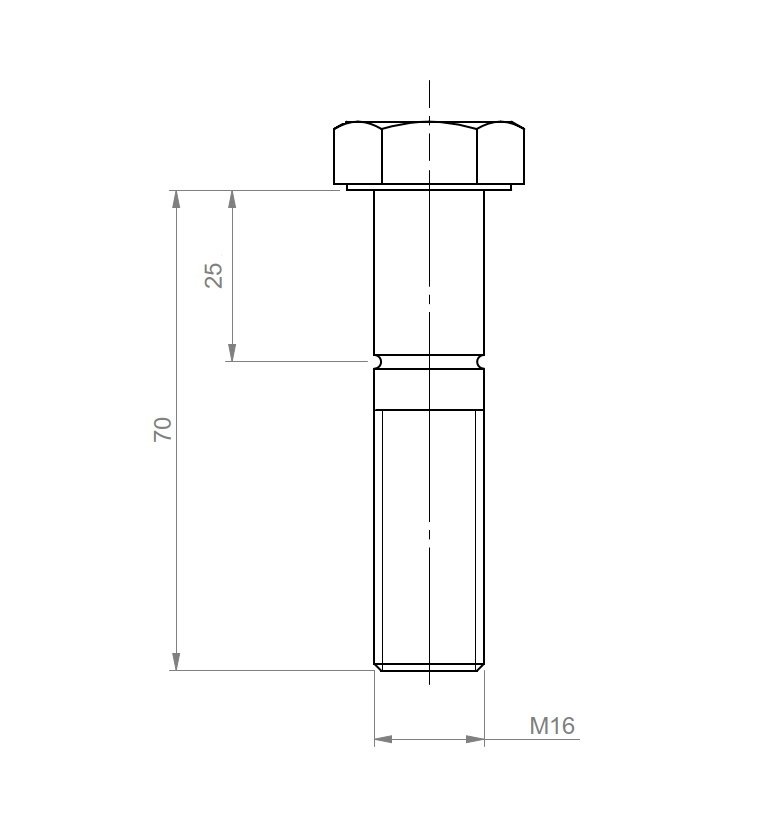 Vis de sécurité M16 préentaillé Ø14 - longueur 70mm