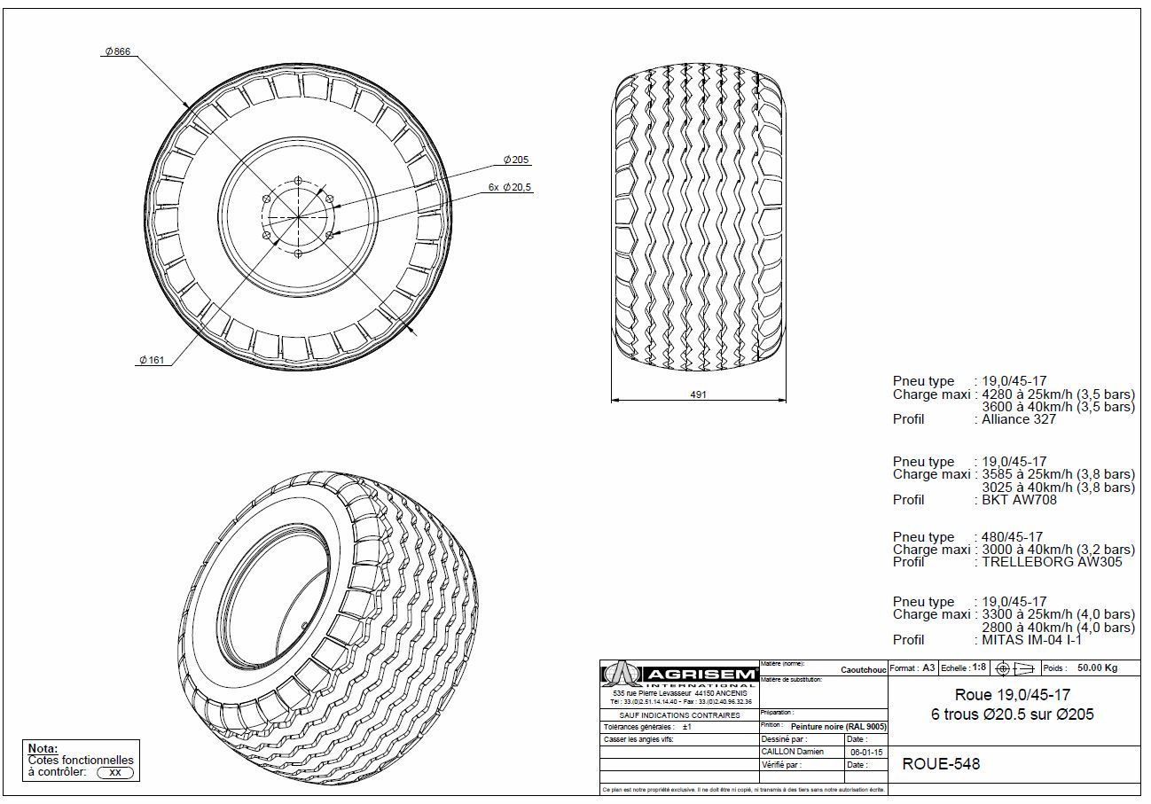 Roue 19.0/45-17 - 6 trous Ø20.5 sur Ø205