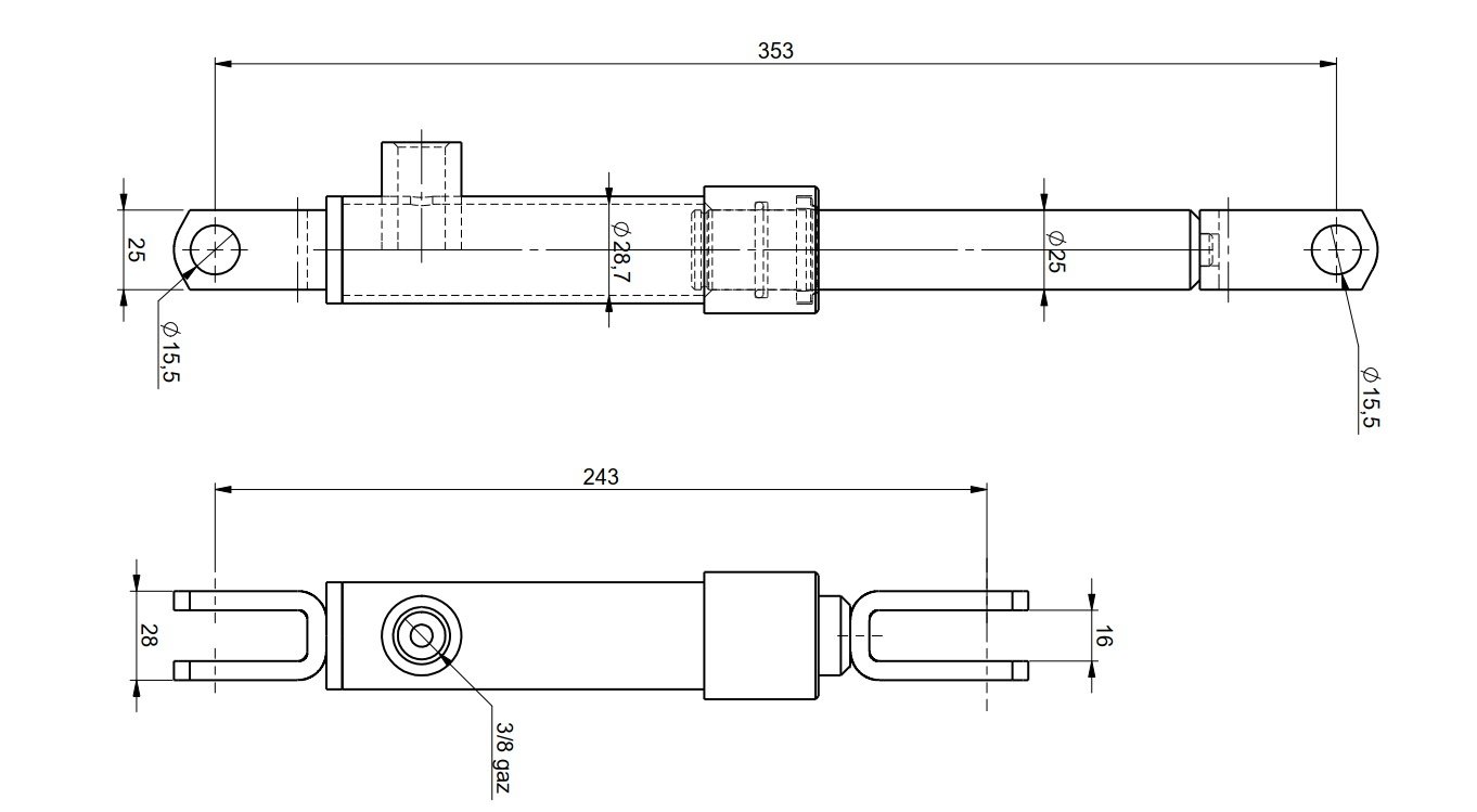 Vérin Ø25 double chape - course : 110mm